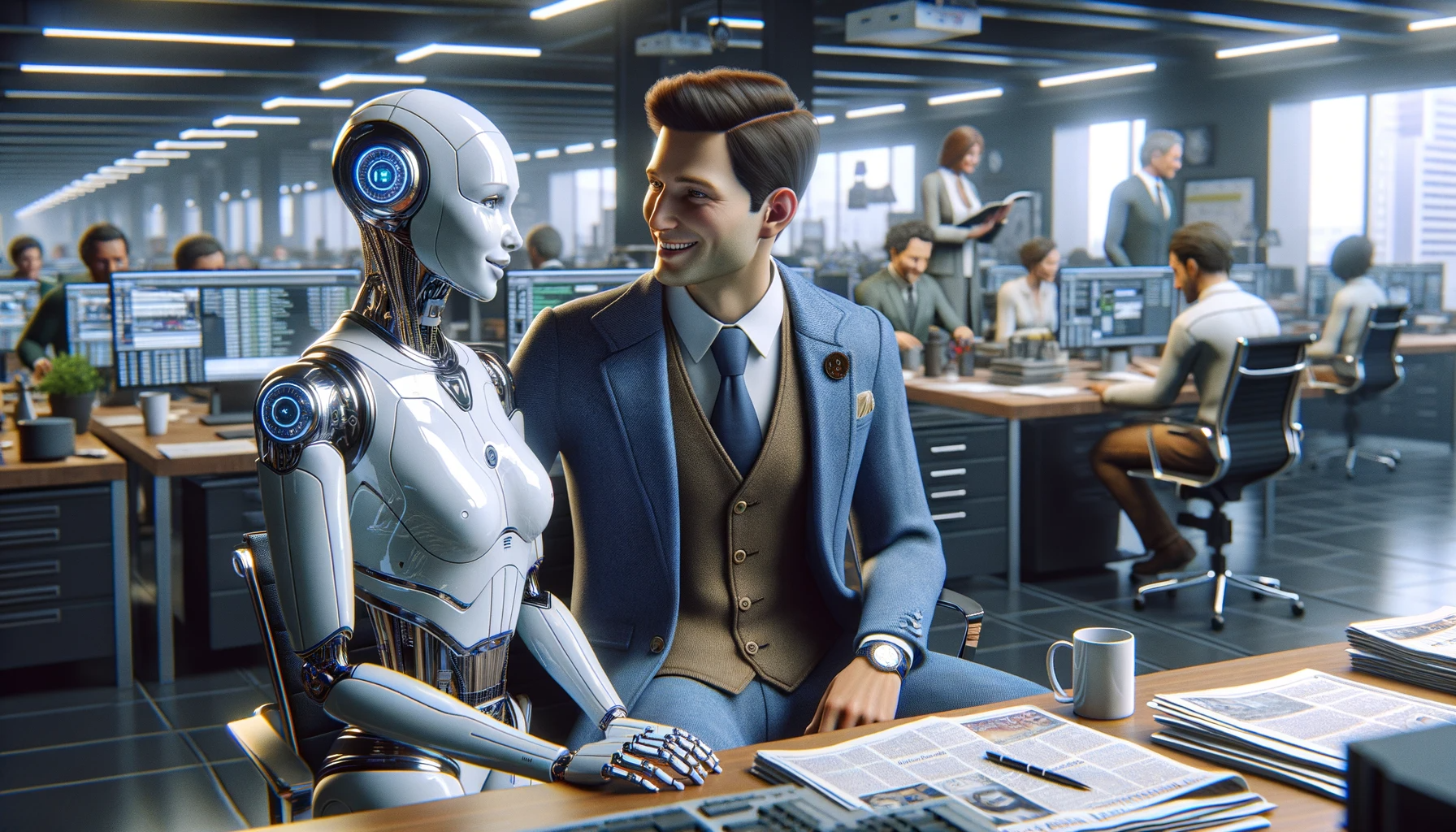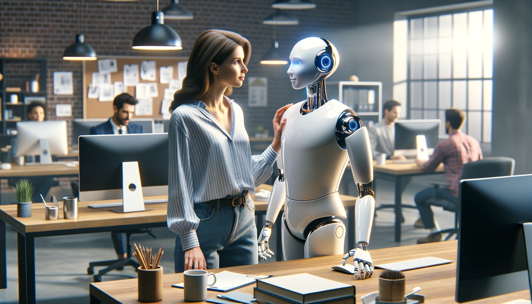 DALL·E 3: Am Ende habe ich der KI noch mal einen Rollentausch vorgeschlagen. Da geht doch was, oder? Computer Love 😉